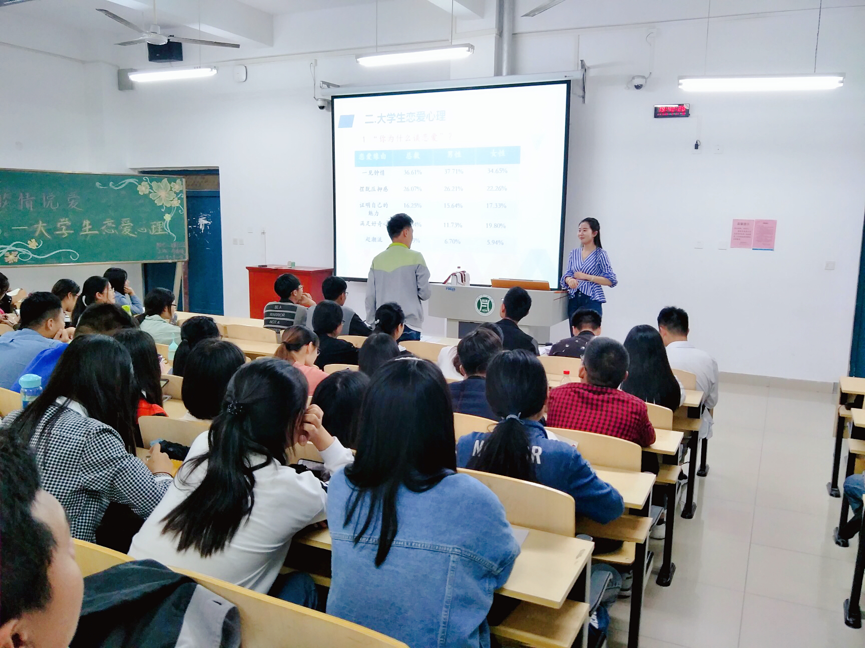 5月22日晚7点,心理中心冯媛媛老师在2教306教室为阳光心理社团“心理学进修班”做了“谈情说爱——大学生恋爱心理”讲座。