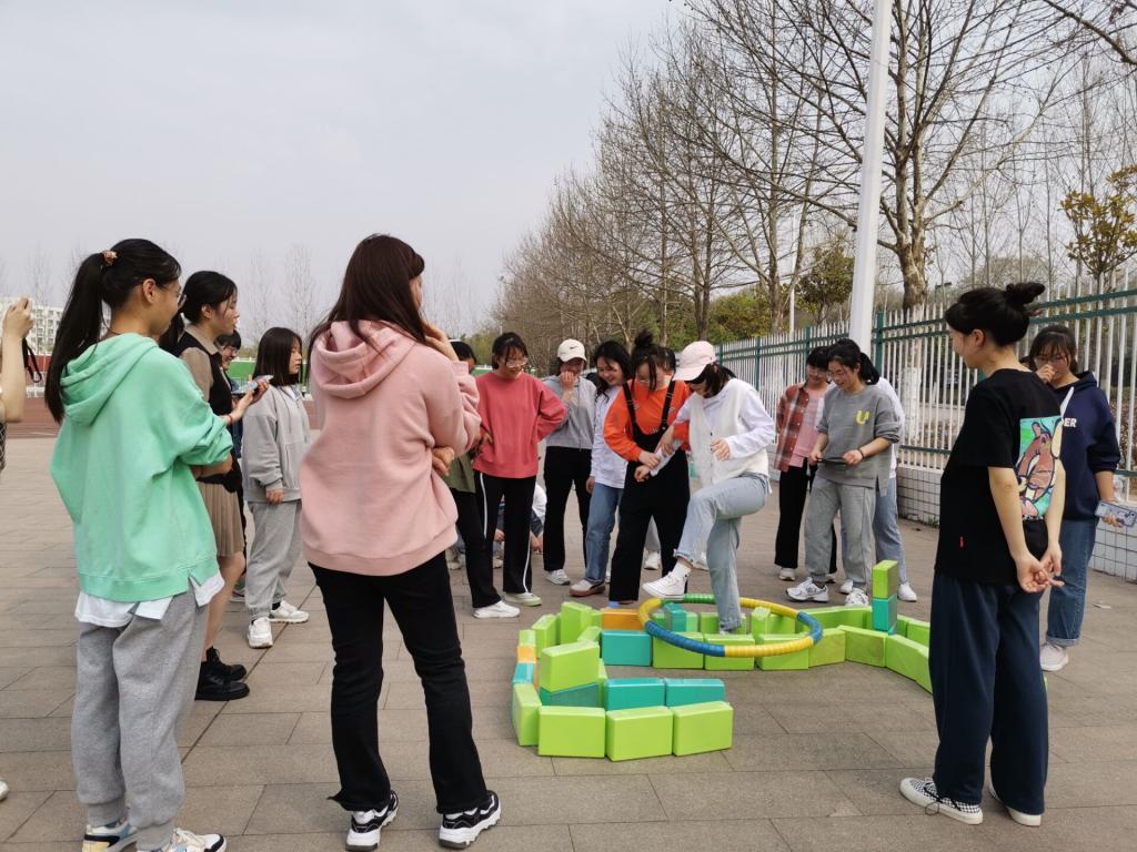校学生会心理健康部于3月15日,在操场上举办“盲人过河”素质拓展活动。本次活动的流程是首先将所有人分为两队,选出队长,队长将队员分为两人一组;其次各队用20分钟的时间给对方布置过河障碍,接着用石头剪子布决定哪一队先闯关,最后有序进行比赛。为了不让自己的小队输掉比赛,部门成员积极组队进行游戏,游戏进行的十分的火热。通过活动的开展,不仅让大家学会团队合作并且增进了部门成员之间的感情,还促进部门成员身心健康,越来越热爱大学生活。