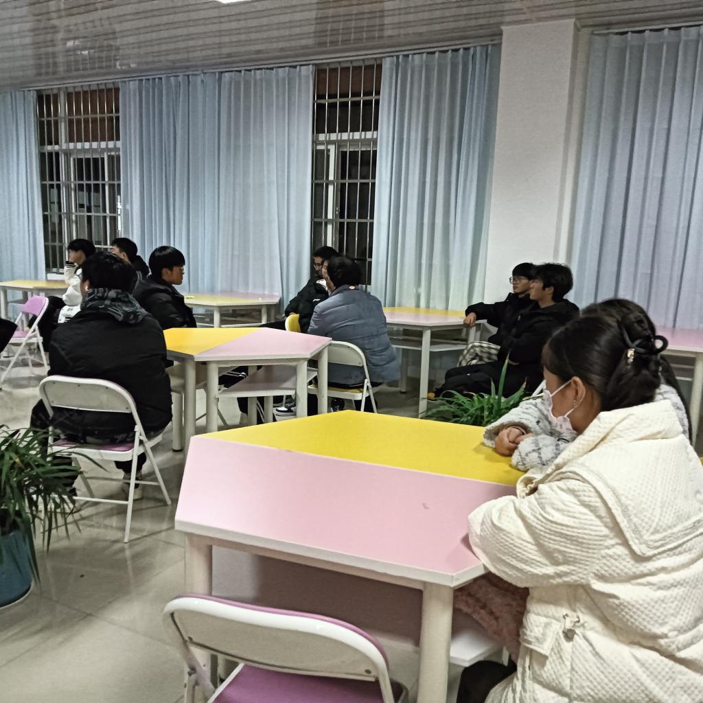 2023年12月14日阳光心理社团在18点50至20点30分于实验楼2B501举办了期待已久的“阳光心理社团元旦晚会商策会”主题活动。本次活动由阳光心理社团社长秦帅杰主持开展。