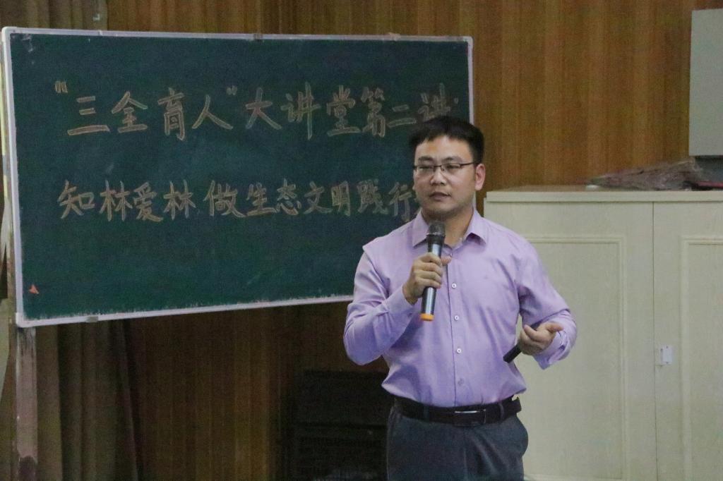 郑伟博士以“知林爱林,做生态文明践行者”为主题,围绕我国在治理沙漠、造林方面取得的成就、习近平总书记在联合国大会的“碳峰值和碳中和”的郑重宣告、习近平总书记提出的“绿水青山就是金山银山”的重要理念三个方面,详细地向同学们讲述了林业的重要性,并用生动的案例引导青年大学生要树立知林爱林意识。