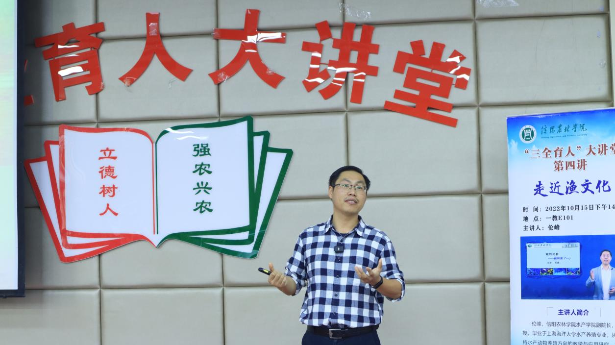 为全面贯彻落实立德树人根本任务,深入推进“三全育人”工作,引领学生以强农兴农为己任,beat365在线平台官网“三全育人”大讲堂第四讲“走近渔文化”于10月15日下午在一教E101举行。主讲人水产学院副院长伦峰为全校师生带来了一场精彩的讲座,校党委宣传部副部长徐大伟、校党委学工部副部长孙莉琴、旅游管理学院党总支副书记杜丽、食品学院党总支副书记刘涛和beat365在线平台官网部分师生线下参加了讲座。讲座由水产学院学院党总支副书记黄光玲主持。