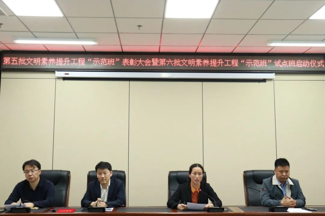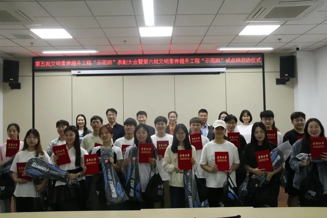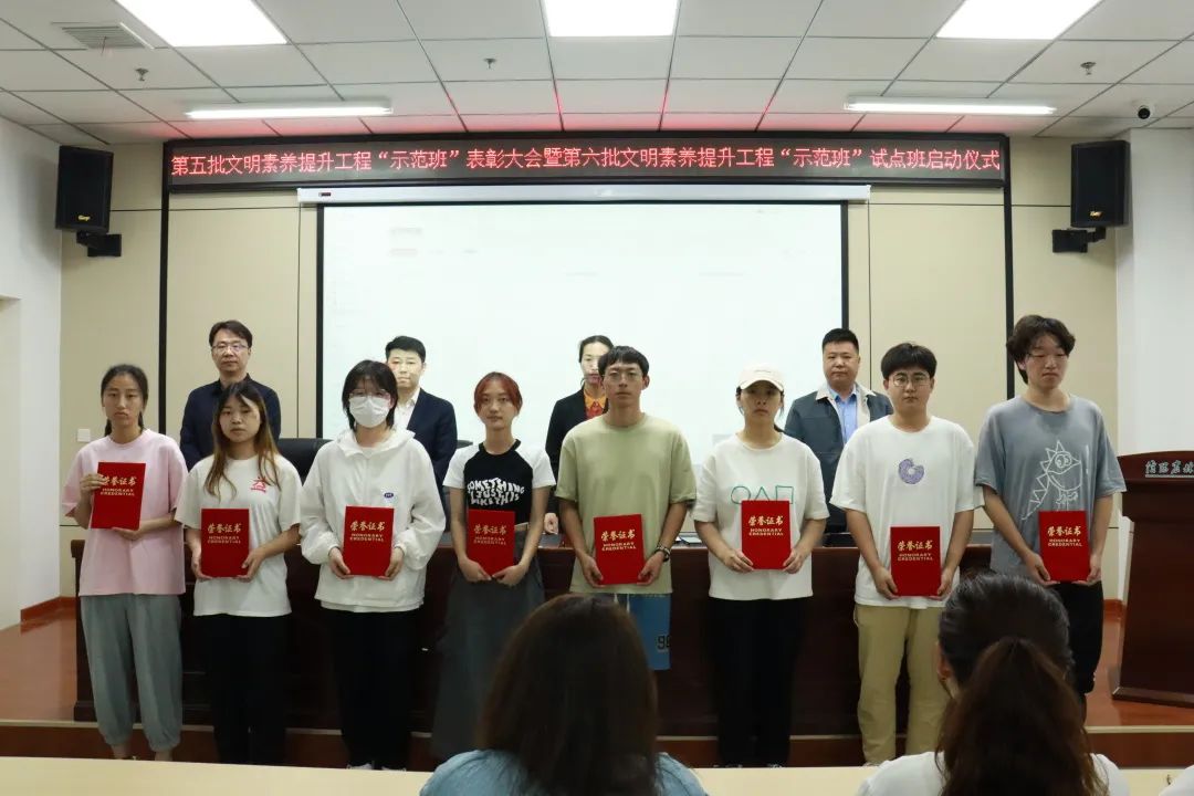 会上,学生处副处长魏宗烽宣读《第五批文明素养提升工程“示范班”试点班验收合格的通报》;在场领导为第五批文明素养提升工程“示范班”班级颁发荣誉证书及奖品;学生处副处长许永强由宣读《第六批文明素养提升工程“示范班”试点班级名单》。