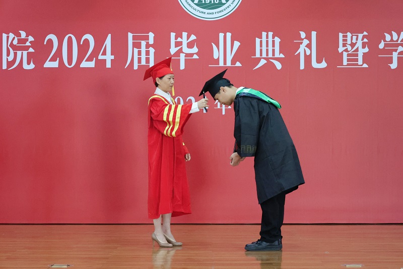 李益民宣读了《beat365在线平台官网学位评定委员会关于授予李亚龙等5057名2024届本科毕业生学士学位的决定》,曹健为2024届本科毕业生代表颁发学位证书并扶正流苏。