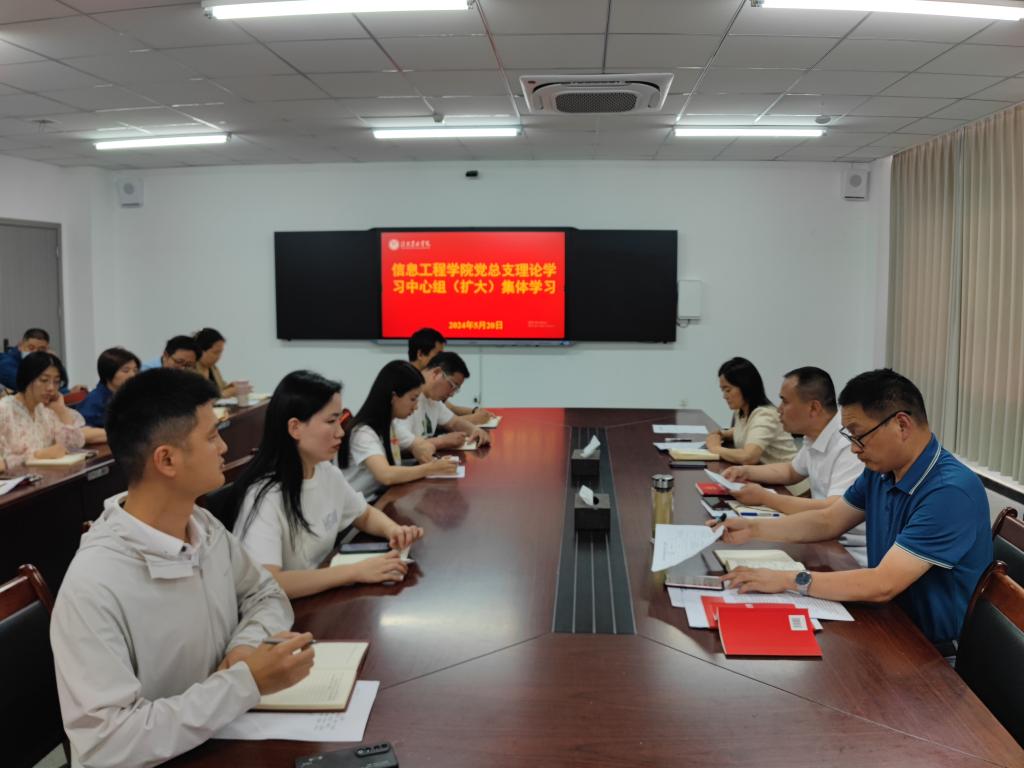 5月20日下午,信息工程学院党总支在双创中心615召开理论学习中心组(扩大)第五次集体学习会。学院领导班子成员,科级干部、各党支部书记(副书记)及专职辅导员参会,会议由党总支书记栗磊主持。