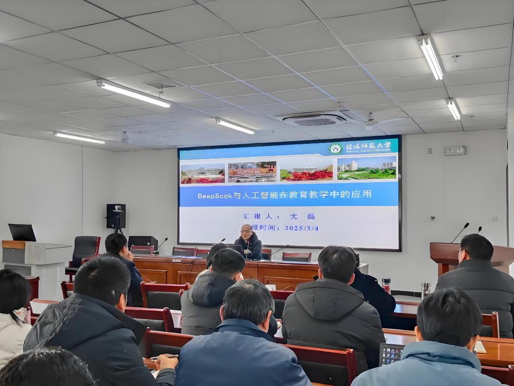 3月4日下午,信息工程学院在双创703召开党委理论学习中心组(扩大)集体学习会,学习贯彻习近平总书记关于人工智能的重要论述和《教育强国建设规划纲要(2024-2035年)》。信阳师范大学计算机与信息技术学院副院长尤磊教授应邀作《Deepseek与人工智能在教育教学中的应用》专题报告,院党委理论学习中心组成员及全体教师参加学习,副院长何勇主持。
