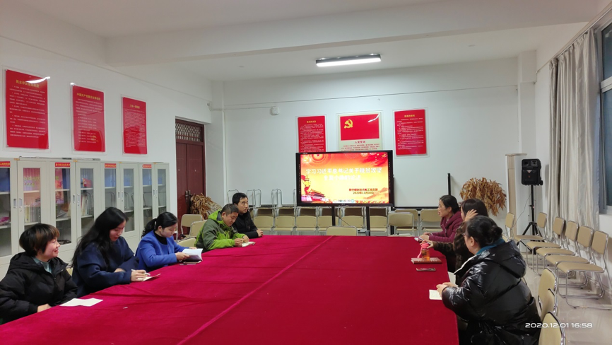 2020年11月30日下午,信息工程学院数字媒体技术教工党支部在科技楼1A404开展了“学习习近平总书记关于脱贫攻坚全面小康的论述”为主题的党课。党支部书记李清玲同志主持学习。