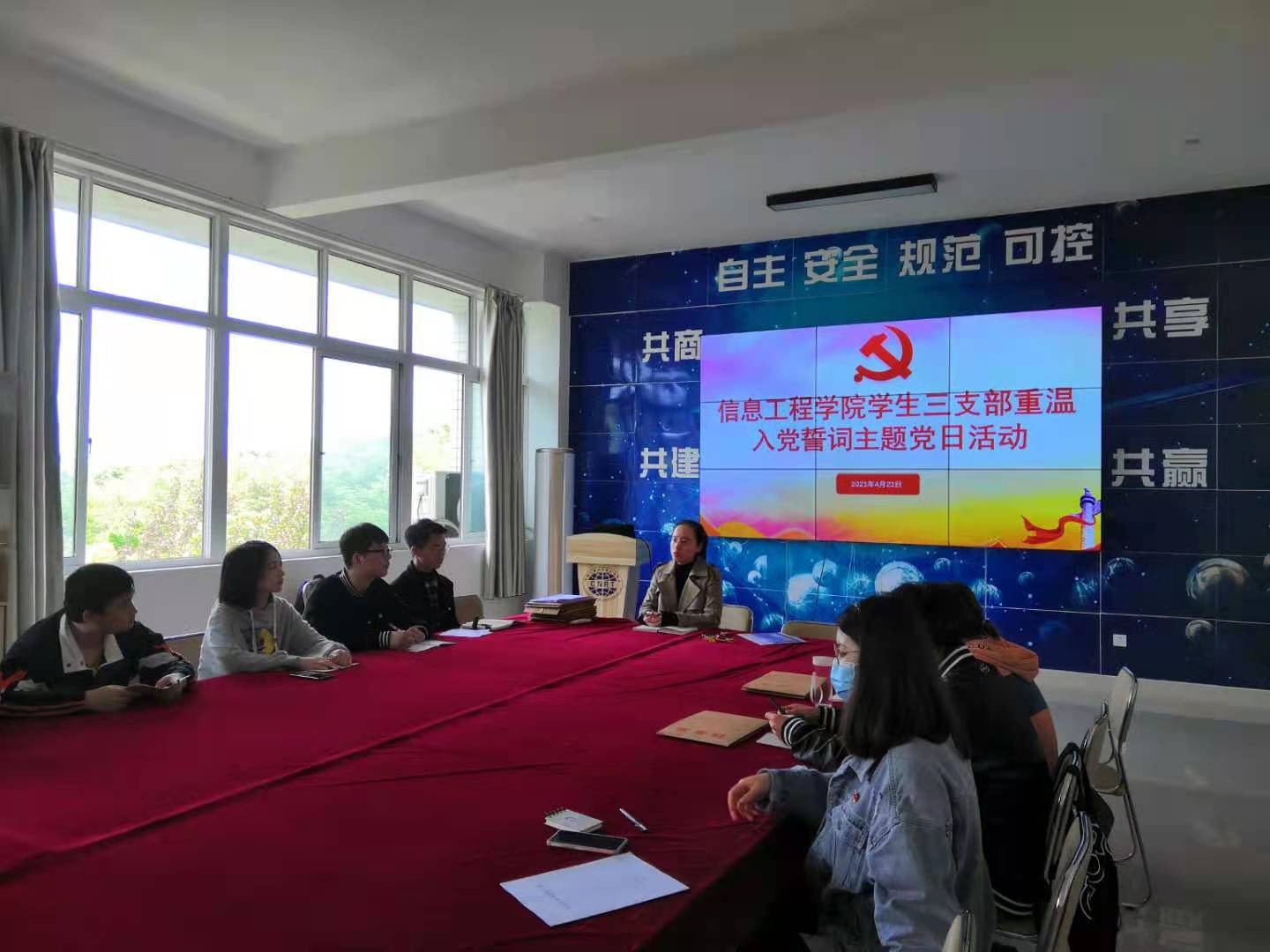 2021年4月22日,信息工程学院学生第三党支部在1A404开展了“重温入党誓词”活动,信息工程学院学生第三党支部书记许华瑾及支部内党员,预备党员,积极分子代表参加了此次活动。