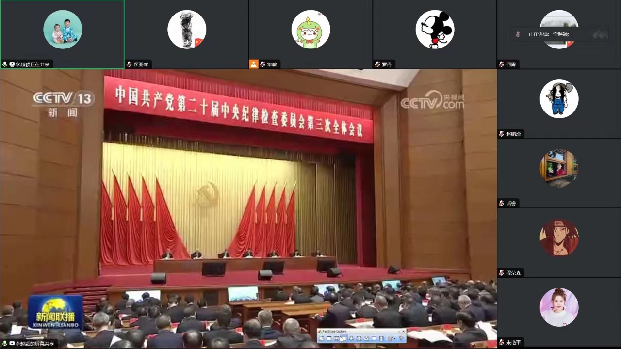 1月10日晚8点,网络工程教工党支部线上开展了集中学习习近平总书记在二十届中央纪委三次全会上的重要讲话精神主题党日活动,会议由支部书记华敏主持,支部全体党员参加。