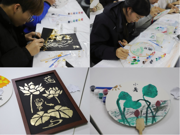 其次进行传统文化漆扇作品展示、评比,鼓励学生党员们从优秀传统文化中汲取奋进力量。