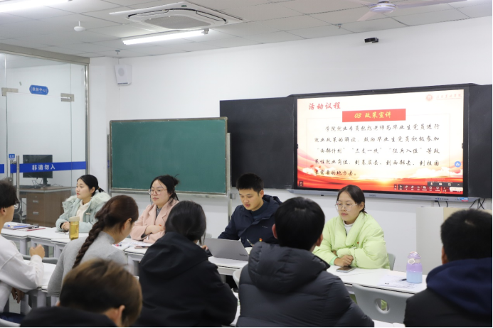 此次主题党日活动不仅增强了党员们的党性修养,也为学生提供了宝贵的就业指导。学生党支部将继续坚持以党建为统领,充分发挥党员的先锋模范带头作用,紧抓毕业生求职关键时期,做细做实毕业生就业指导服务,多维度提升学生职业素养和职业规划能力,多措并举促进毕业生高质量充分就业。(撰稿/张彪)