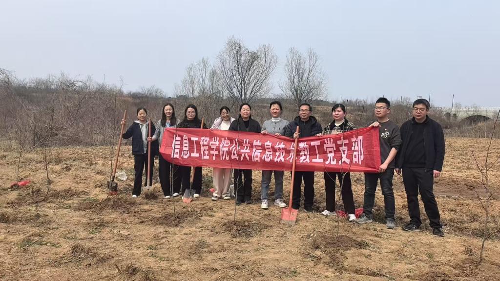春回大地万物苏,植树添绿正当时。在第47个植树节来临之际,为积极响应国家生态文明建设的号召,深入践行绿色发展理念,3月11日上午,信息工程学院公共信息技术教工党支部与高等数学教工党支部赴信阳北湖风景区联合开展“植此青绿践初心,碳路先锋向未来”主题党日活动。