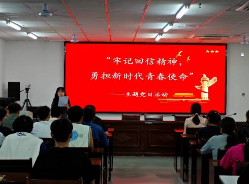 5月27日,信息工程学院学生党支部在双创中心703开展“牢记回信精神,勇担新时代青春使命”主题党日活动。本次活动旨在通过学习回信精神、聆听边疆故事,思考如何在本职工作中践行“回信精神”,同时结合党的作风建设要求,让这份精神在新时代绽放出更加耀眼的光芒。活动由学生第二党支部组织委员李佳阳主持,全体在校党员积极参与。