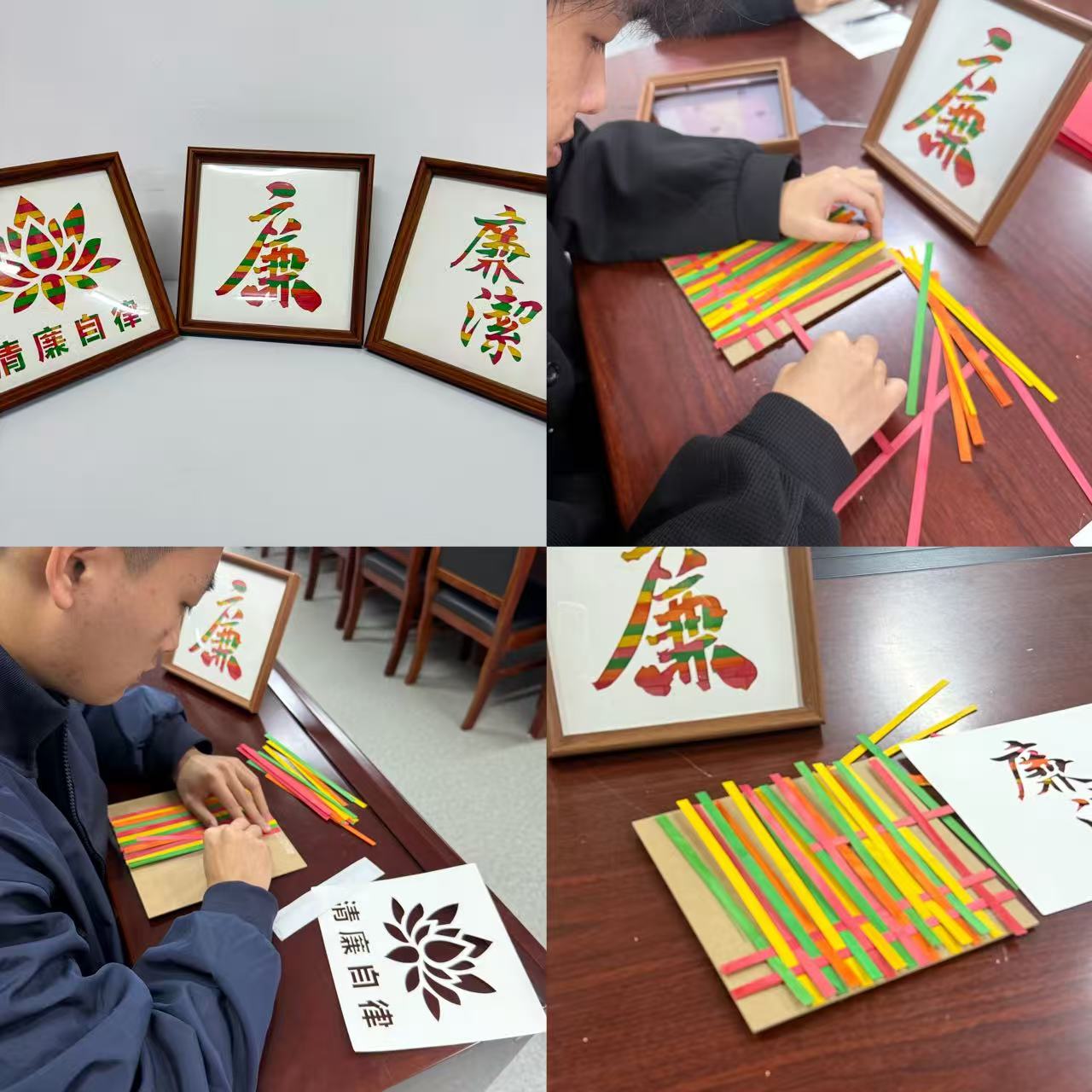 其次,大家集中观看了廉洁教育宣传片,一个个发人深省的案例让在场人员接受了一次深刻的思想洗礼。在廉洁教育知识竞答环节,大家踊跃参与,以赛促学;清正廉洁非遗竹编画创作则将传统技艺与廉洁文化相结合,让支部成员在动手实践中感悟廉洁内涵,厚植廉洁理念。