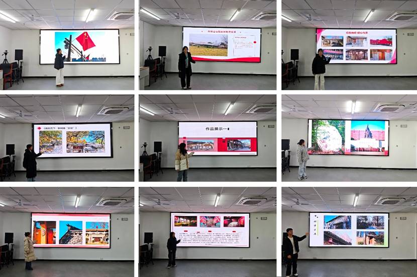 首先党支部书记谭翔升带领大家学习红色文化的核心内涵,解读革命历史,引导大家从身边的革命旧址、红色场馆挖掘拍摄灵感,用镜头定格身边的红色印记。随后,各参赛人员对自己的参赛作品进行现场讲解。一幅幅定格红色瞬间的影像、一段段动人的讲解,让台下听众接受了一次深刻的红色精神洗礼,更深刻认识到红色基因的传承密码与青年一代的使命担当。