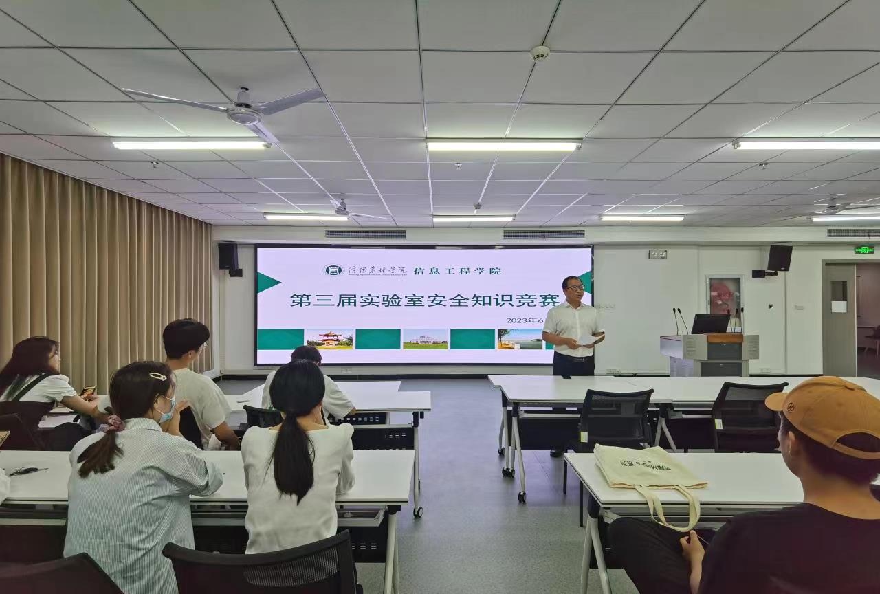 为了增强学生的实验室安全意识,提高实验室安全管理水平,2023年6月6日,beat365在线平台官网信息工程学院在双创中心618举办了第三届实验室安全知识选拔赛。来自信息工程学院四个本科专业的学生参加了比赛。考试开始前,实验教学中心主任舒志旭老师向同学们公布了考试方式、考试流程、考试的目的与意义,并向大家讲解了实验室安全的重要性。