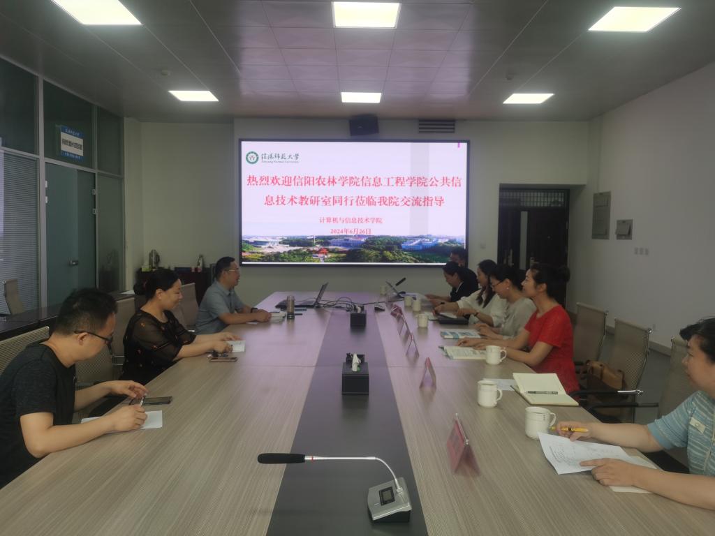 6月26日上午,信息工程学院公共信息技术教研室主任华敏老师带领团队成员,前往信阳师范大学计算机与信息技术学院进行课程建设交流访问。