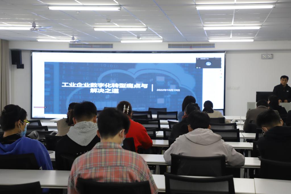 10月28日下午,信息工程学院邀请河南八六三软件股份有限公司企业数字化项目部总监闫聪为学院师生做了题为“工业企业数字化转型痛点与解决之道”的讲座。讲座由信息工程学院副院长潘赟主持,信息工程学院青年教师和数据科学与大数据技术专业学生参加此次讲座。