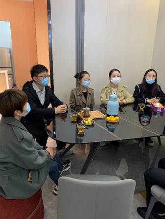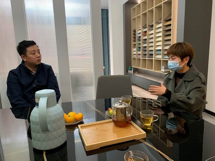 黄蓉老师首先向公司负责人介绍了信息工程学院各专业学生的课程学习、专业实训情况,分享了人才培养目标和专业优势,以及近年来的实习就业情况。公司负责人李乐非常欢迎我院科技服务团队的到来,为大家详细介绍了公司的组织架构、业务流程、专业技术人员构成,以及信阳本地家装领域的设计人才需求。随后各位老师与公司负责人进行了深入的交流,帮助公司梳理技术需求,就设计行业相关软件、媒体营销策略交换了意见,各位教师从专业角度帮助解决公司运营过程中遇到的困惑。
