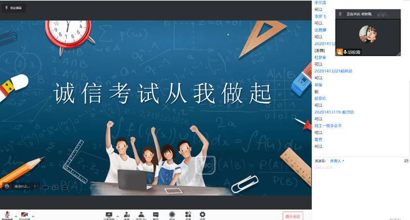 为了树立学生诚信意识,加强诚信教育,创造良好学风。12月13日至17日,信息工程学院各班级辅导员通过线下线上等方式召开诚信考试教育主题班会。