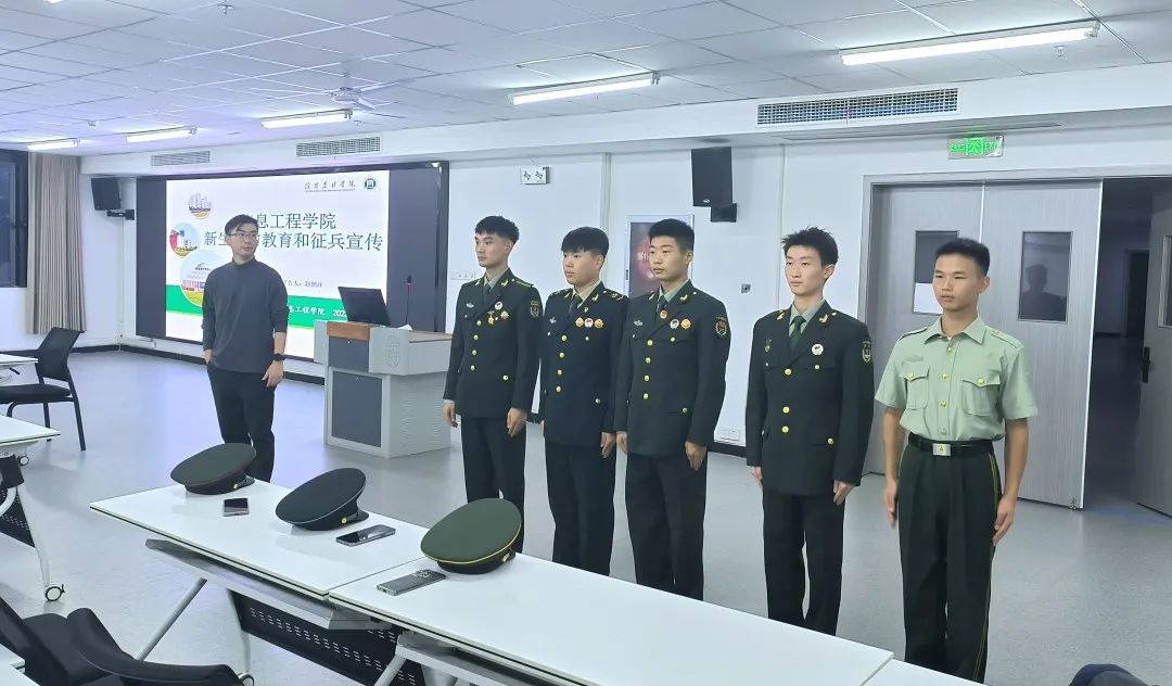 为增强信息工程学院全体新生的国防意识和爱国精神, 9 月27日,在双创中心618教室,赵鹏泽老师为23级新生开展了主题为“信息国防,有你有我”的国防主题教育和征兵宣传报告会。