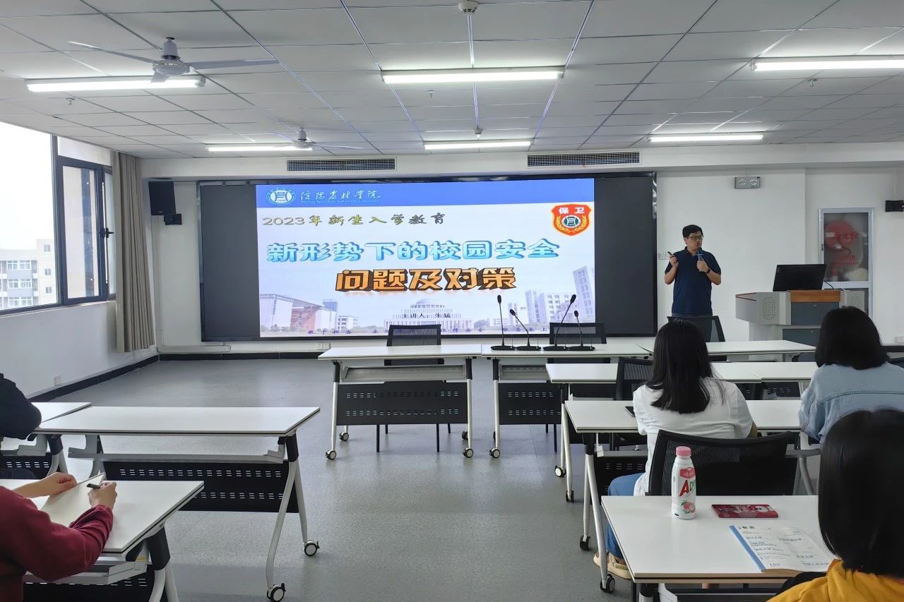 为深入学习贯彻党的二十大精神,落实立德树人根本任务,守住学生安全底线。9月25日,信息工程学院组织开展了2023级新生日常管理教育,党总支副书记朱猛老师以“新形势下的校园安全问题及对策”为题开讲,2023级全体本专科新生参加。