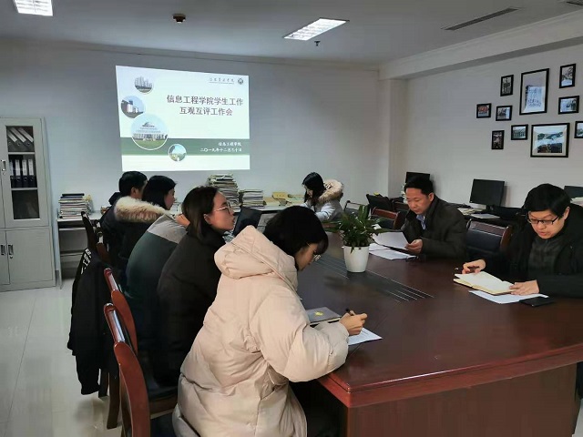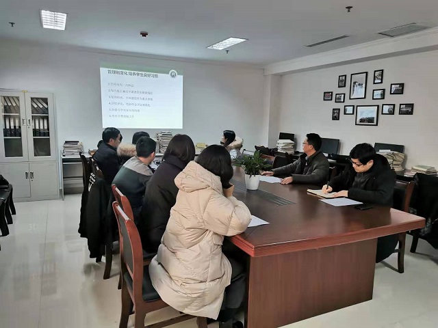2019年12月30日下午,我院在综合办公楼921召开本年度学生工作互观互评会议。会议由院党总支副书记朱猛主持,院党总支书记梁其宇及院全体专兼职辅导员参加会议。