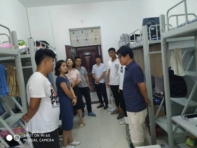 为确认学生返校情况,2019年9月2日下午,信息工程学院学工组深入宿舍查看学生到校情况,并为学生送去问候和关怀。