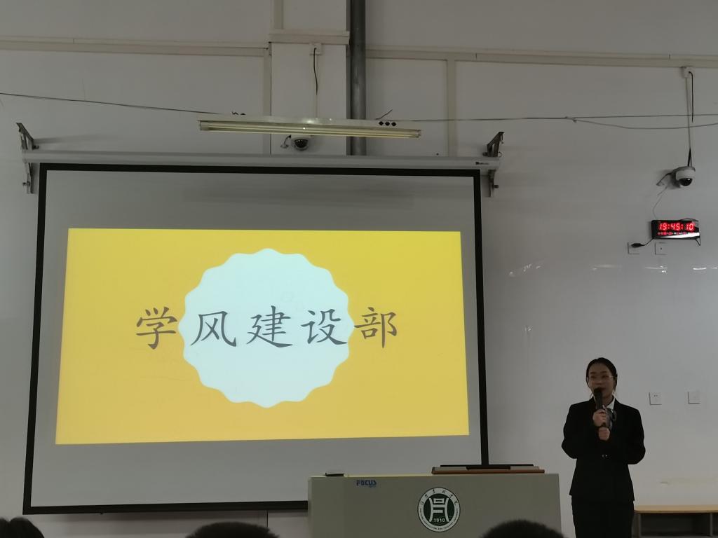 宣讲会伊始,由严舒平老师进行讲话,提醒同学们加入学生会的意义和职责所在。随后,各部门负责人以中心的工作为切入点,告诉同学们学生会是大学生展示自我,锻炼自我,成就自我的平台,同学们可以通过这个平台提升自己的能力,锻炼自己的意志,并结合自身的工作经验向同学们讲解各部门的工作事务和用人要求。紧接着,由各部门工作人员向同学们详细解释各部门的主要工作,邀请同学们加入纳新群,进一步了解相关情况,提高同学们的兴趣,希望同学们能够在学生会中展现自我,积极完成学院工作,为同学们服务。