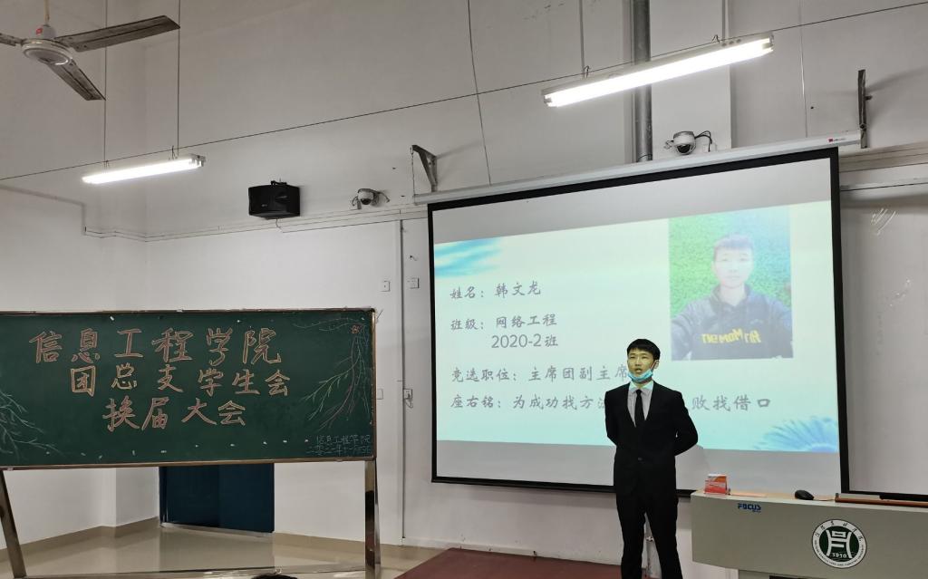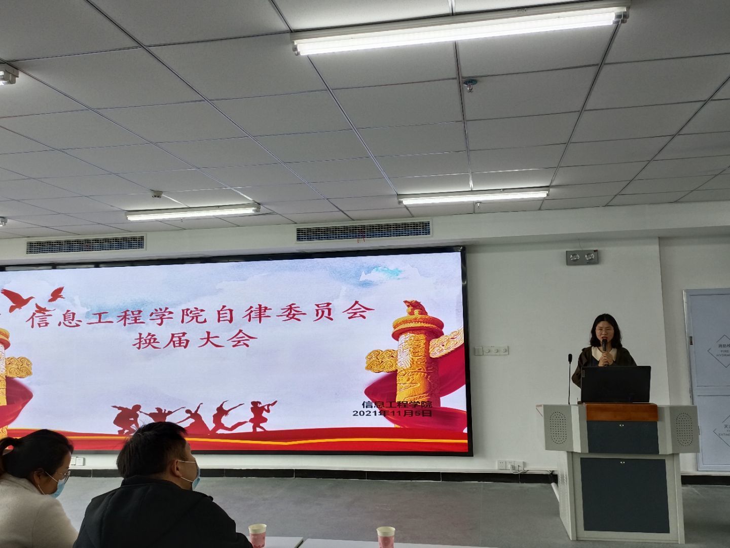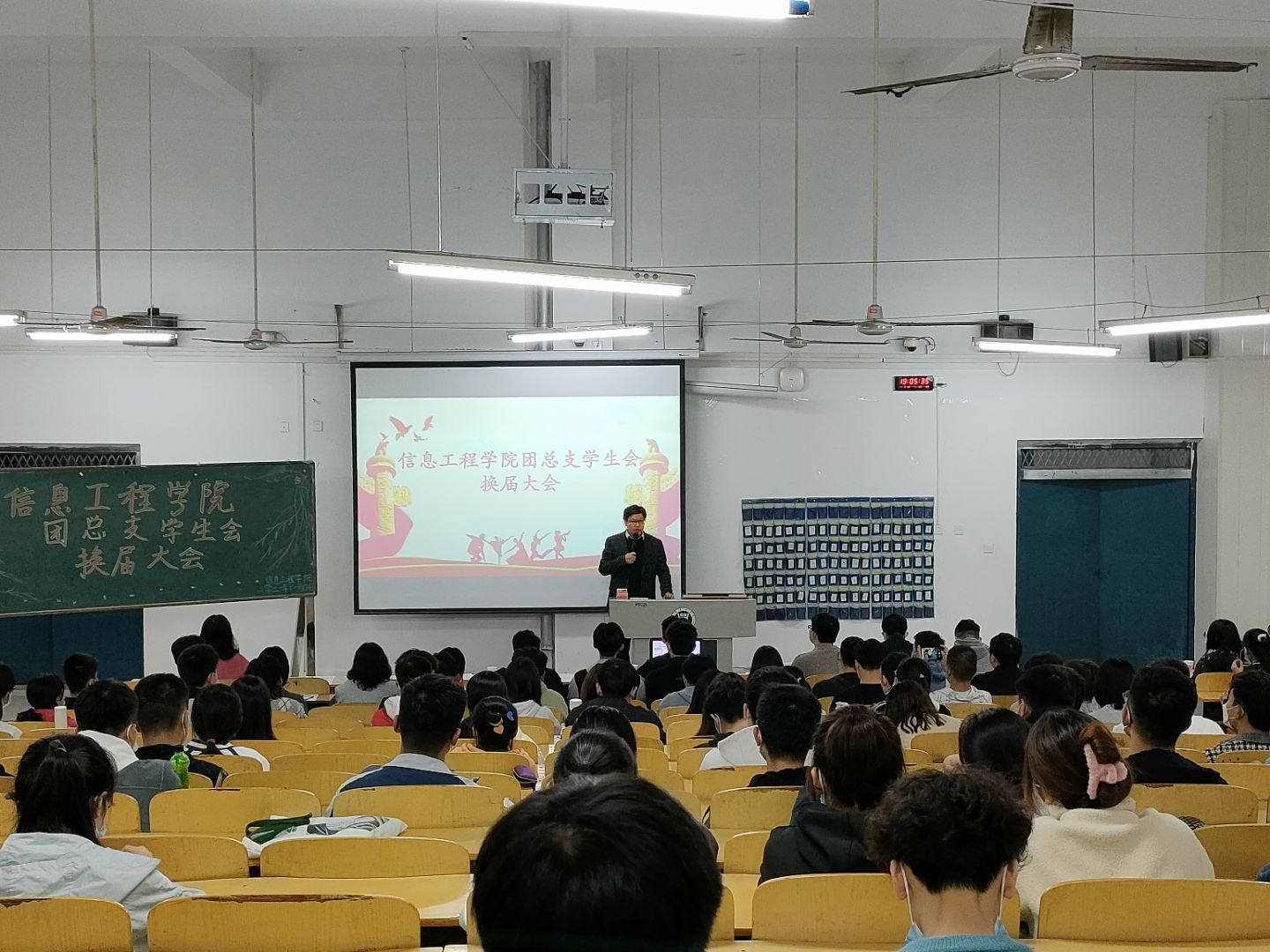新时代赋予新使命,新时代书写新篇章。为进一步加学生干部的队伍建设,促进学生“德、智、体、美、劳”全面发展。信息工程学院于11月4日晚7点和5日中午13点在二教404、双创中心618举办了信息工程学院第九届学生会换届大会。参加本次的换届大会的有党总支副书记朱猛老师、团总支书记严舒平老师、大一大二辅导员和全体学生干部。