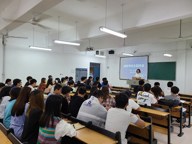 2021年专升本考试将至,为进一步加强专升本学生考风考纪教育,营造公平公正、诚实守信的考试环境,2021年5月25日,信息工程学院辅导员严舒平在二教112教室对全体专升本学生开展了诚信考试主题班会。