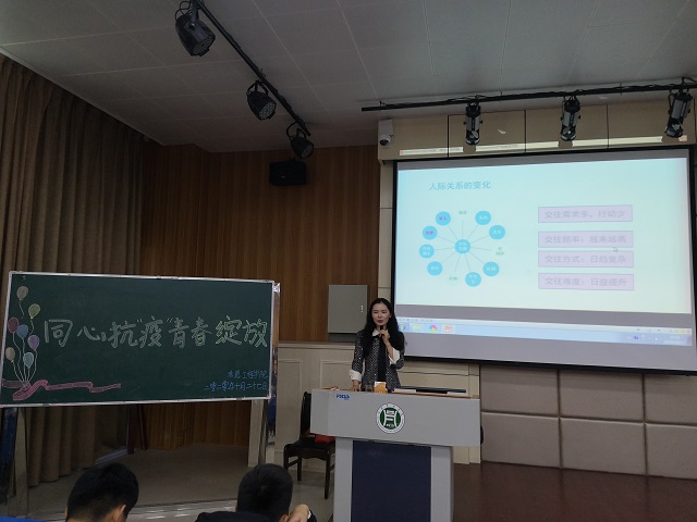 除了身体健康方面,大学生的心理健康也十分值得重视。程老师以“同心抗“疫”,青春绽放”为题,首先讲述了疫情期间大学生保持心理健康的方法,鼓励大家以积极向上的态度拥抱每一天。其次从心理健康、心理建设及人际关系等方面出发,对大学生学习、生活等方面进行了讲解和分析,并就日常生活中经常遇到的问题对同学们做了提醒。会议气氛轻松,同学们反应热烈,讲座效果良好。