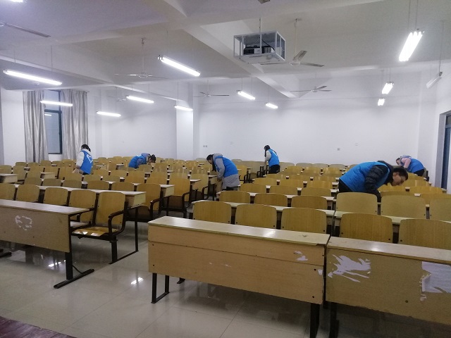 每位志愿者都带着自己的工具进入教室,认真清理教室座位残余的垃圾,并细心地装到了自己携带的垃圾袋里,同时用扫帚打扫地面上的垃圾。各小组同学相互默契配合,还大家一个个干净整洁的教室。活动过程中,同学们积极劳动,用精神饱满的状态对待此次活动。经过几个小时的辛苦劳动,二教教室的卫生状况明显改善,给同学们提供了一个良好的学习环境。