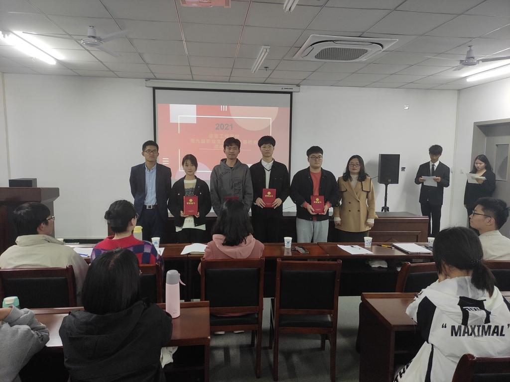 为引导学生合理规划大学时光,树立正确的择业观和就业观,提升综合素质和职业能力。信息工程学院于2021年10月28日晚上7点在双创中心708举办了第九届大学生职业生涯规划大赛初赛。信息工程学院团总支书记严舒平、辅导员许华瑾老师、李洋老师、胡俊霞老师、郝晨老师、蔡忠祥老师担任本次比赛的评委,部分学生到场观赛并为选手们加油助威。