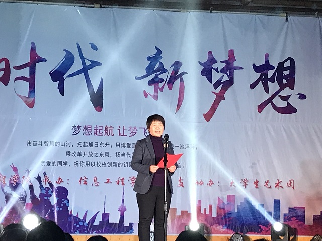 为深入学习贯彻习近平新时代中国特色社会主义思想和党的十九大精神,凝聚学生力量,激励全院师生积极进取、再创佳绩,2018年12月14日晚7:00,信息工程学院在一餐三楼举行了“新时代,新梦想”主题迎新晚会,以最绚丽的光彩迎接崭新的2019年。