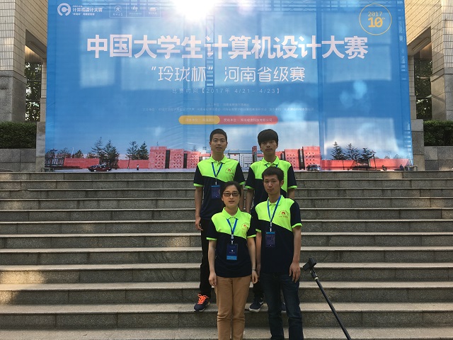 2017年4月21-23日,2017年(第10届)中国大学生计算机设计大赛河南省级赛在郑州大学举行。本次大赛共有全省36所高校的228件作品参赛。信息工程学院刘丽娟、余昭君老师指导冯世博、马永明和李项项作品“校园社交平台----携动人生”,参加本科组软件应用与开发类的比赛。三位学生经过技能测试、作品演示和现场答辩三个环节,最终获得三等奖。