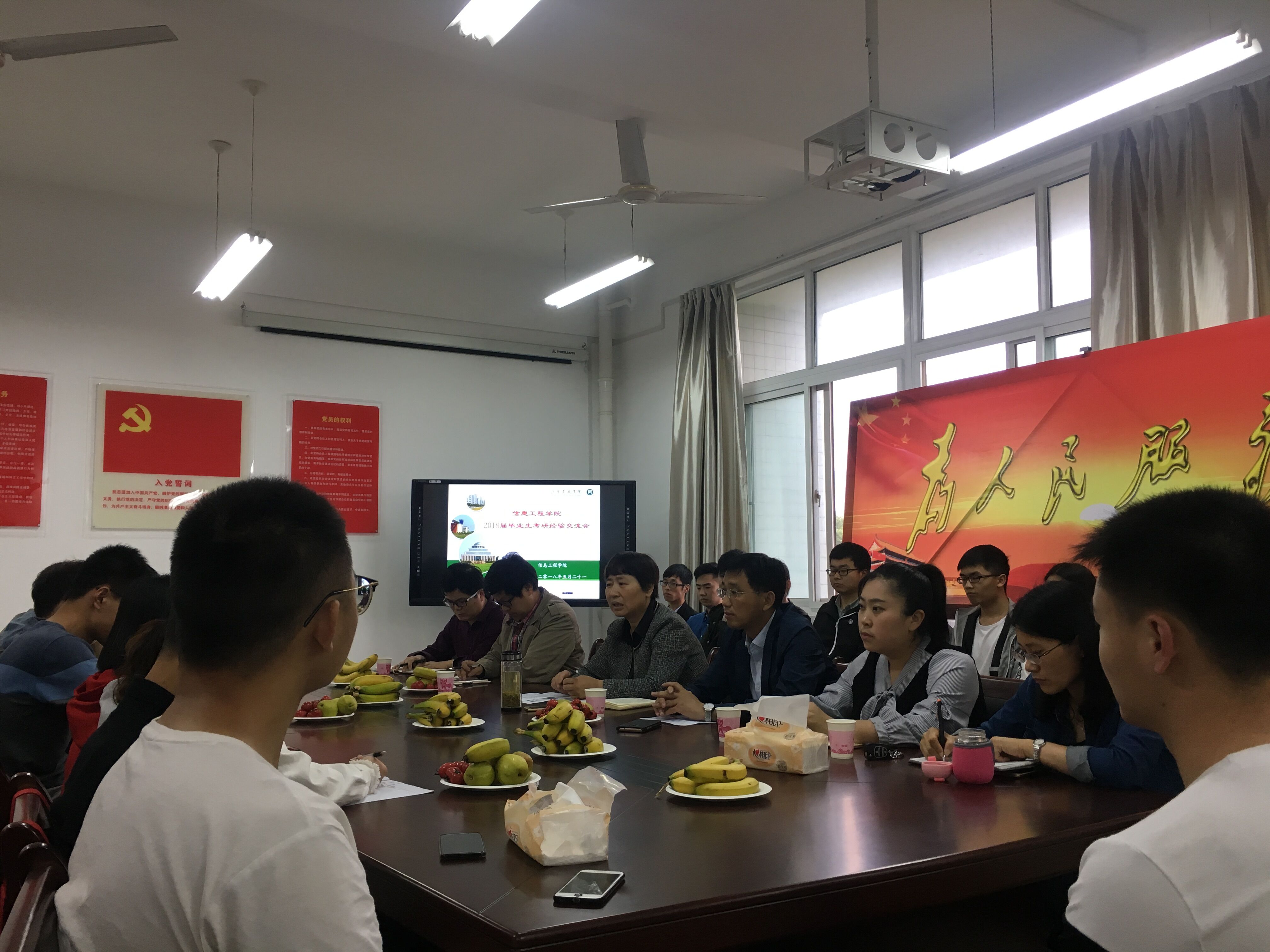 2018年5月21日,信息工程学院在1A402召开2018届毕业生考研经验交流会暨2019届毕业生考研动员会。院长商信华、副院长李友国、部分专业教师及2018届考上研究生的毕业生、部分准备报考硕士研究生的2019届毕业生参会。