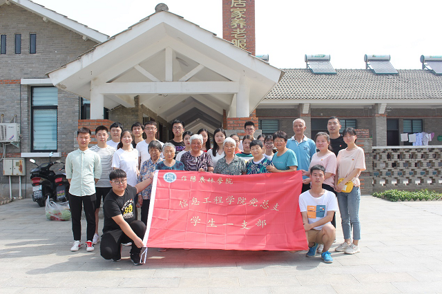 关爱夕阳红,走进养老院 信息工程学院学生第一党支部主题党日活动 为进一步弘扬中华民族尊老、敬老、爱老的传统美德,营造欢乐祥和的社会氛围,2019年6月16日,信息工程学院学生一支部带领支部党员与预备党员走进了信阳市颐和祥安养老综合服务中心,举办关爱