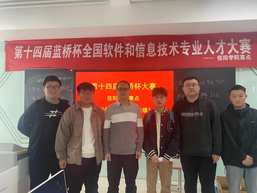 2023年4月8日,由副院长潘赟、科研秘书殷明等5位老师带队前往信阳师范学院和信阳学院赛场,组织学生参加第十四届“蓝桥杯”全国软件和信息技术专业人才大赛省赛。本次比赛学生获得一等奖3项、二等奖8项、三等奖5项的优异成绩。其中,郭玺、赵普和张金阳三位同学获得了第十四届“蓝桥杯”大赛全国总决赛的参赛资格。具体获奖情况如下表: