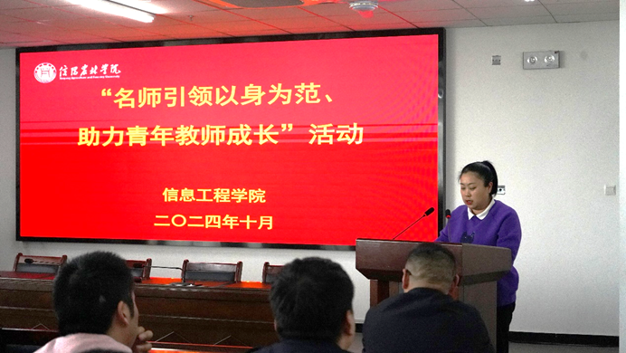 为贯彻落实党的二十大、二十届三中全会精神,深入学习习近平总书记关于教育的重要论述,落实立德树人根本任务,进一步加强青年教师培养和师德师风建设,10月29日下午,信息工程学院在双创703举办了“名师引领以身为范助力青年教师成长”活动。