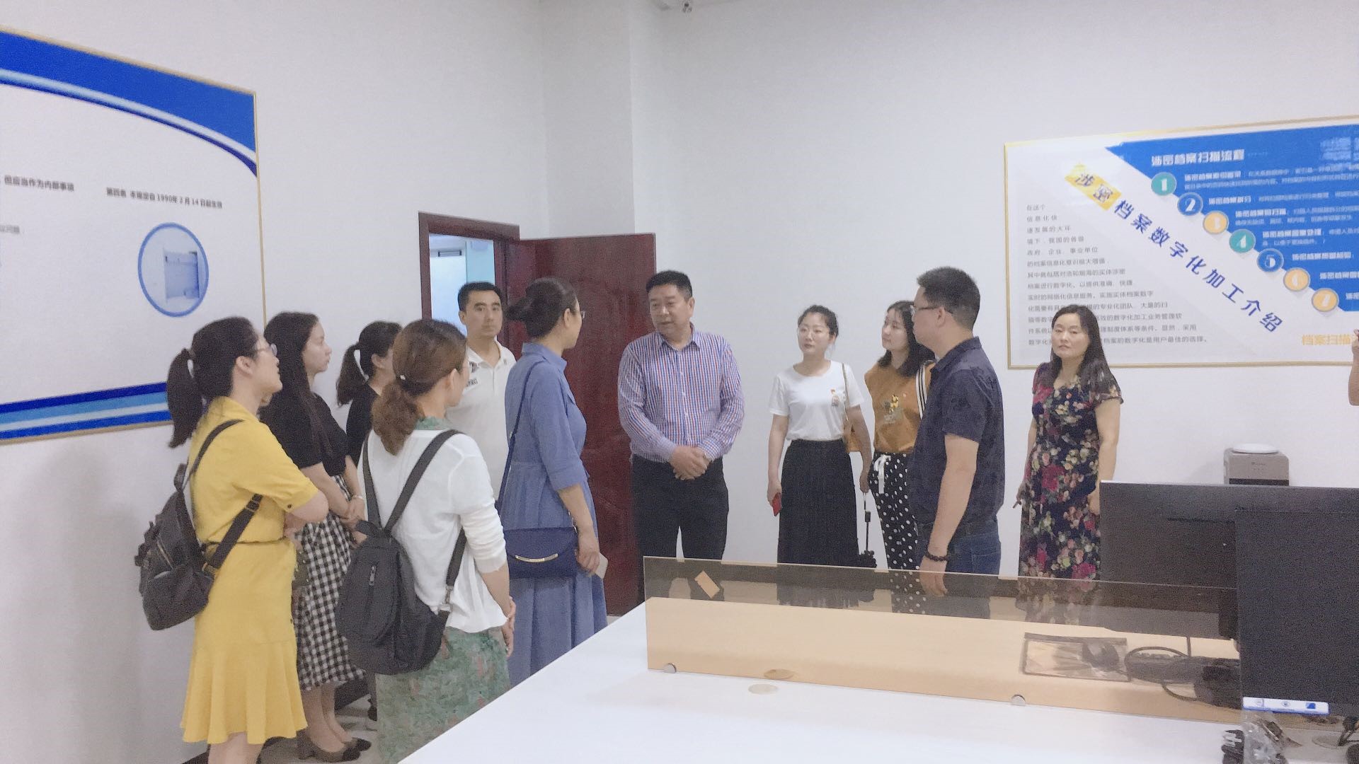 灵山科技聂鸿飞、技术部负责人刘兴秋陪同参观。向参观的师生分别介绍了灵山科技的“数字化车间、大幅图纸处理中心、书籍文献处理中心、非涉密借阅中心、档案托管中心、音频档案处理中心、视频档案处理中心、音视频档案体验中心、实物档案交接中心、数梦工场、管理中心”等13大功能区域。