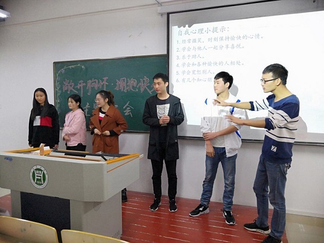 此次班会活动通过PPT展演,组织游戏,播放视频等形式展开。班会内容包括大学生常见的心理问题,心理健康判断标准、心理问题解决方法等多个方面。在这个主题班会中同学们都以饱满的热情投入到我们的活动中,面对心理测评的问题,同学们展开了激烈的讨论,并各自发表了自己的见解,活跃了班会的气氛。各班心理委员强调:一个人的生理健康和心理健康都是很重要的,一定要调整好自己的心理,防止悲剧发生。活动环节更是非常的贴切我们的大学生心理健康问题,让大学生在紧张的学习中可以用游戏的方式来缓解生活中的压力。在学习的紧张生活中大家可以用这种有意思的游戏来弥补一下心灵健康不足。