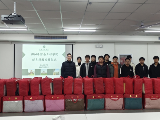 12月6日下午,信息工程学院资助服务部从学生处领取了满载爱心的棉被。12月10日,在各位辅导员老师的悉心组织下,将学校精心准备的51份爱心棉被发放到了同学们手中。此次爱心棉被发放活动,让同学们在寒冷的冬日里感受到了来自学校的温暖与关怀,激发了他们积极向上、奋发有为、回馈社会的坚定信念。同学们纷纷表示,将铭记学校的恩情与关怀,以实际行动传递这份爱与温暖。(撰稿/信息工程学院 谭翔升)