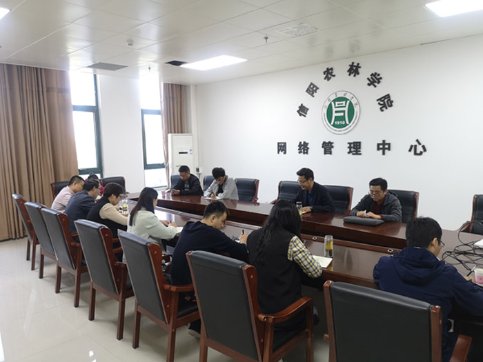 为持续推进“不忘初心、牢记使命”主题教育,10月24日上午,网络管理中心在图书馆四楼会议室召开调研座谈会,邀请了党委办公室、校长办公室、教务处、学生处、后勤管理处(后勤服务总公司)、财务处、基建处、保卫处、图书馆、金叶莘源公司(校园无线网运营公司)参加,会议由网络管理中心主任杜永强主持。