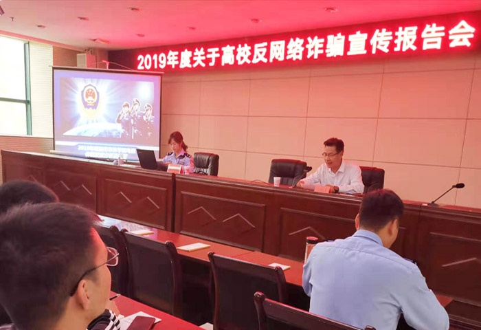 9月18日下午,按照学校网络宣传周活动安排,网络管理中心邀请信阳市公安局羊山分局姜玲玲警官来校作《高校防网络诈骗》专题报告。报告会由网络管理中心主任杜永强主持,学校各单位信息安全员、学生信息员和相关专业的学生代表参加了报告会。