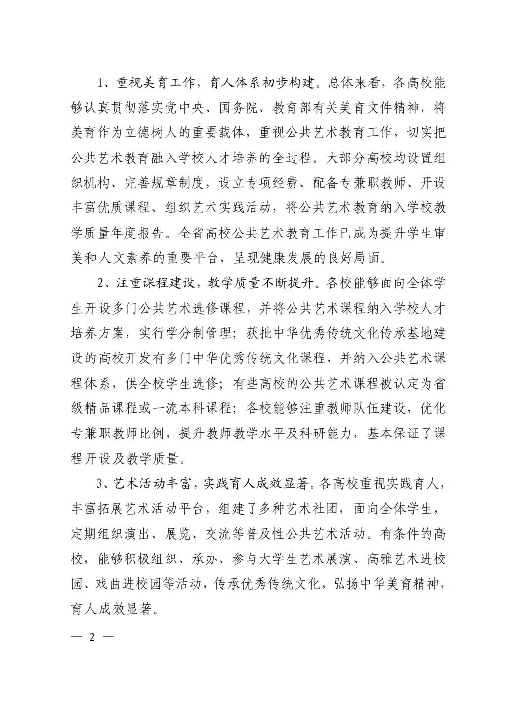 本科高校公共艺术教育评估每五年进行一次,是我省为全面贯彻党的教育方针、构建德智体美劳全面发展的育人体系、实现立德树人的美育育人功能、完善面向全体学生的公共艺术教育育人机制的重要措施,也是对全省本科高校公共艺术教育工作的综合性评价。
