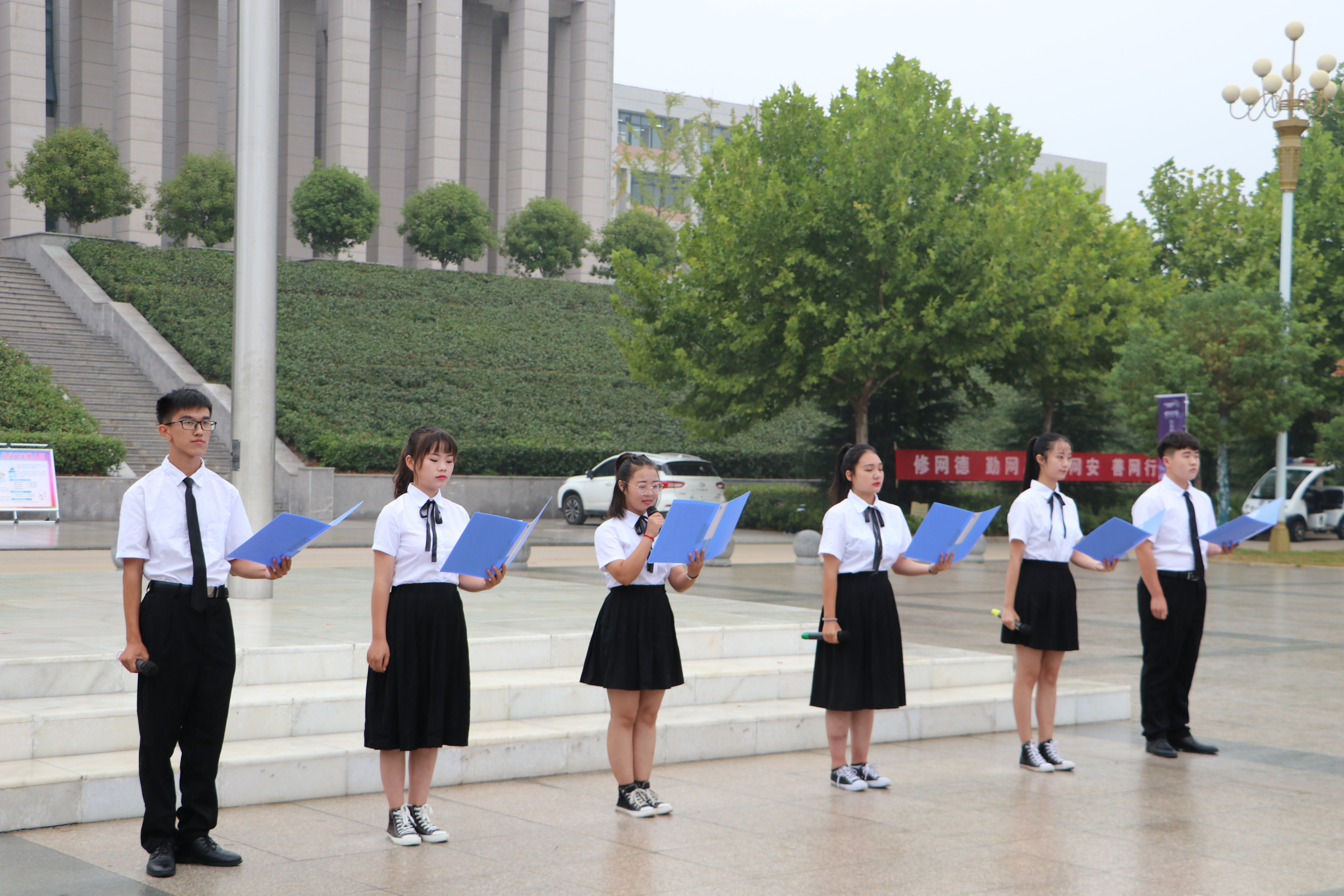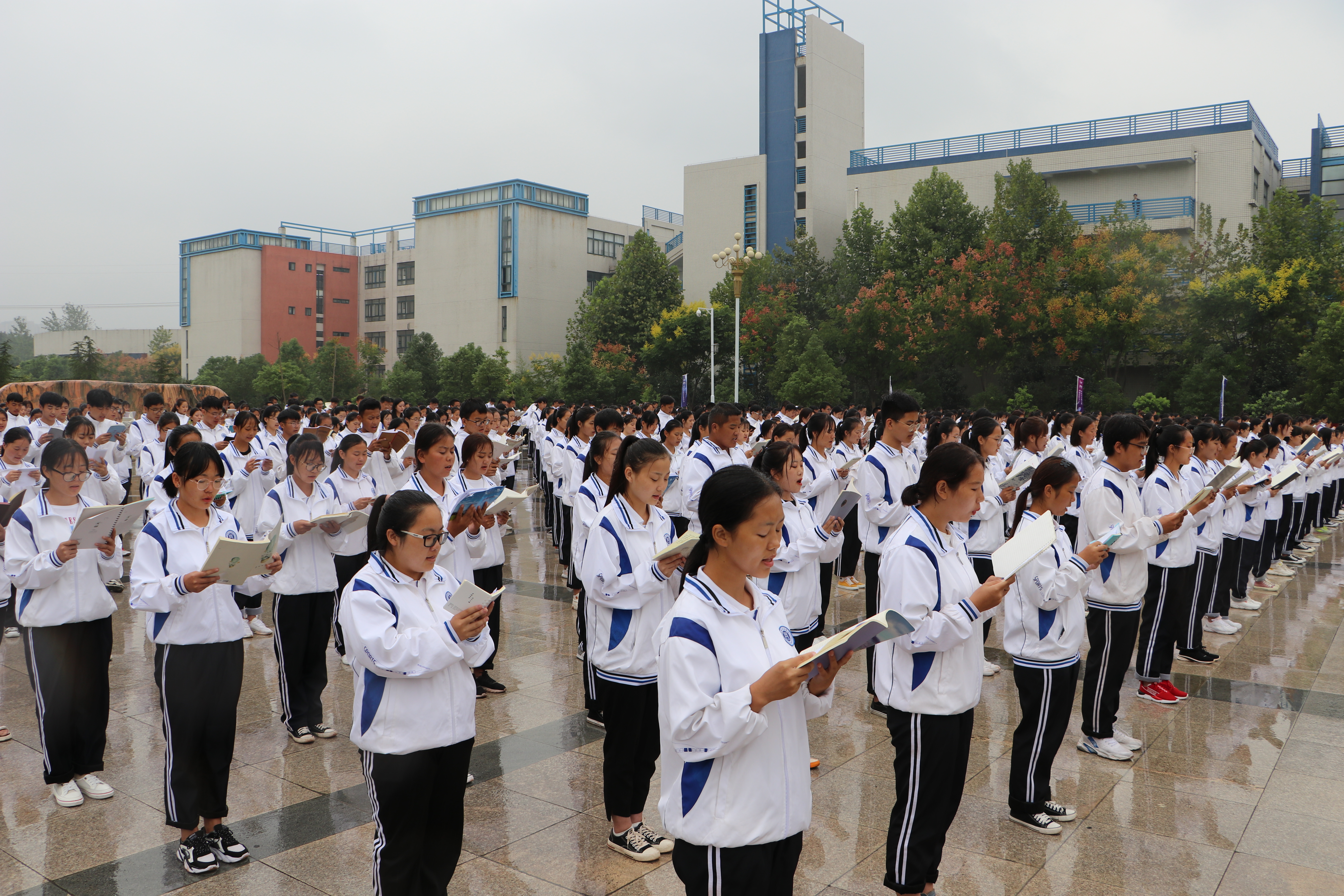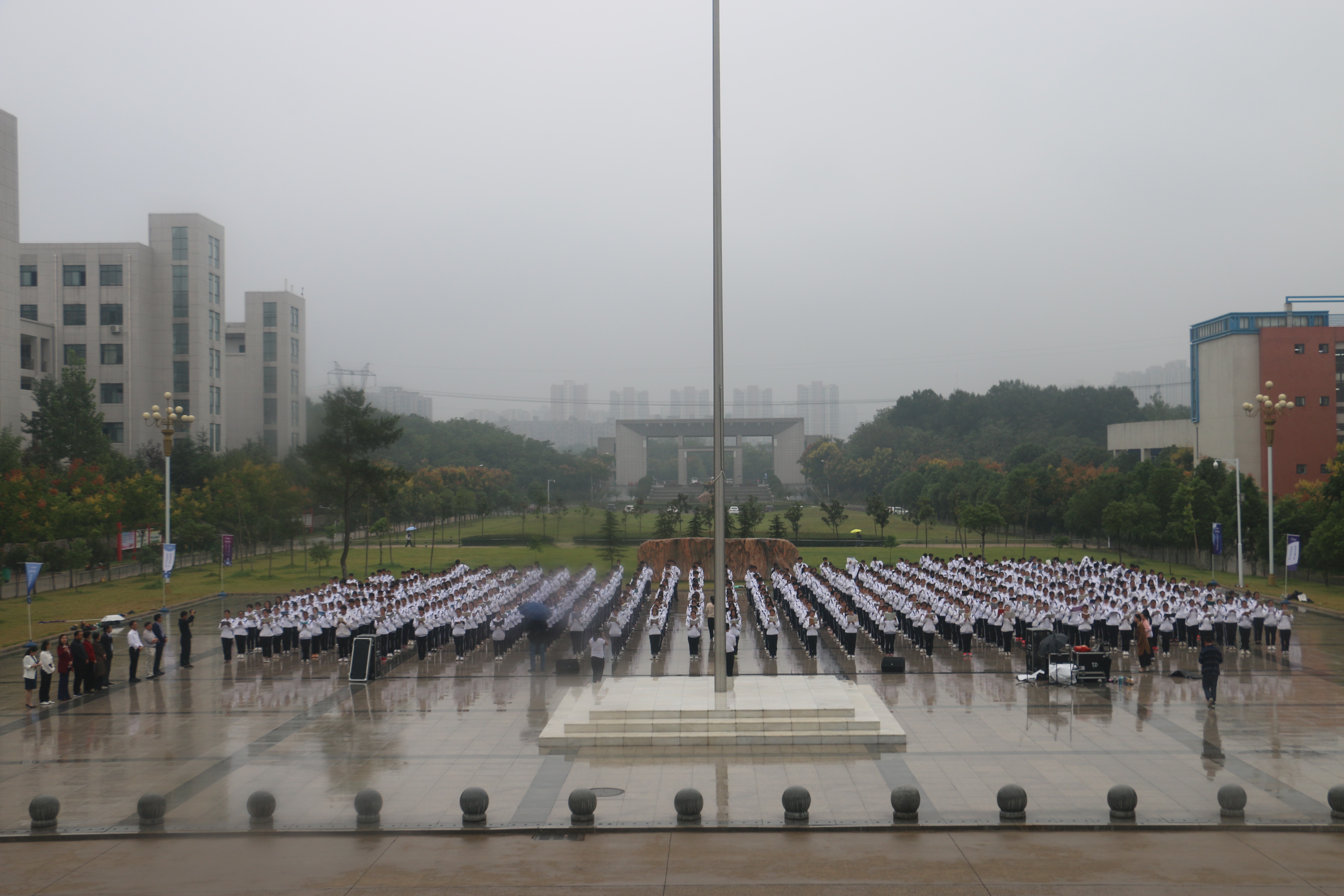 诵读活动期间下着濛濛细雨,汝宁广场却是一片火热。在场的六百余位同学们齐声诵读《祖国啊,我亲爱的祖国》将整场诵读活动推向高潮,为新中国成立70周年献上了自己的祝福。