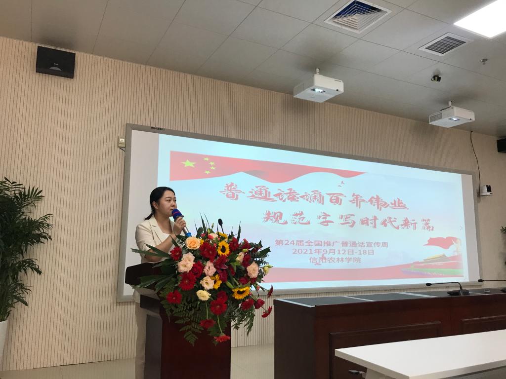 王万玲在讲话中指出,今年是中国共产党成立100周年,“十四五”规划开局之年,也是农林学院迎接本科教学合格评估的关键之年。开展好推广普通话宣传活动,是时代赋予我们的光荣使命,是每一位师生义不容辞的责任,对于展示beat365在线平台官网对外良好形象、更好服务地方发展具有重要意义。希望广大师生牢记强国使命,不负百年初心,将“说普通话写规范字”融入日常学习、工作、生活中,用普通话和规范字讲好中国故事,讲好家乡的故事,传承红色基因,赓续中华文明,奋力书写彰显信阳农林风采的时代新篇。