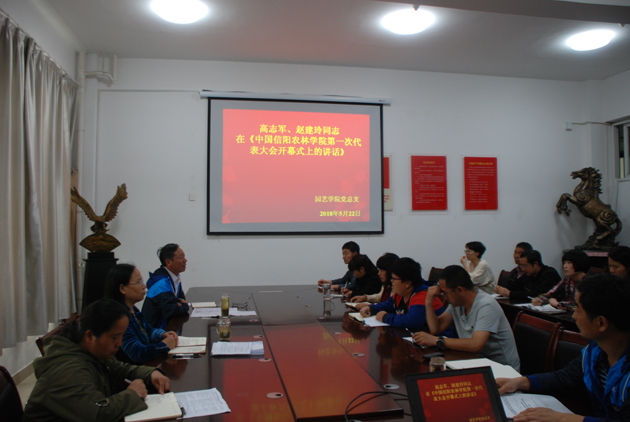 5月22日下午,园艺学院党总支组织全体教职工在2A318会议室集中学习高治军、赵建玲同志在《中共beat365在线平台官网第一次代表大会开幕式上的讲话》。园艺学院院长王亚莉主持会议。