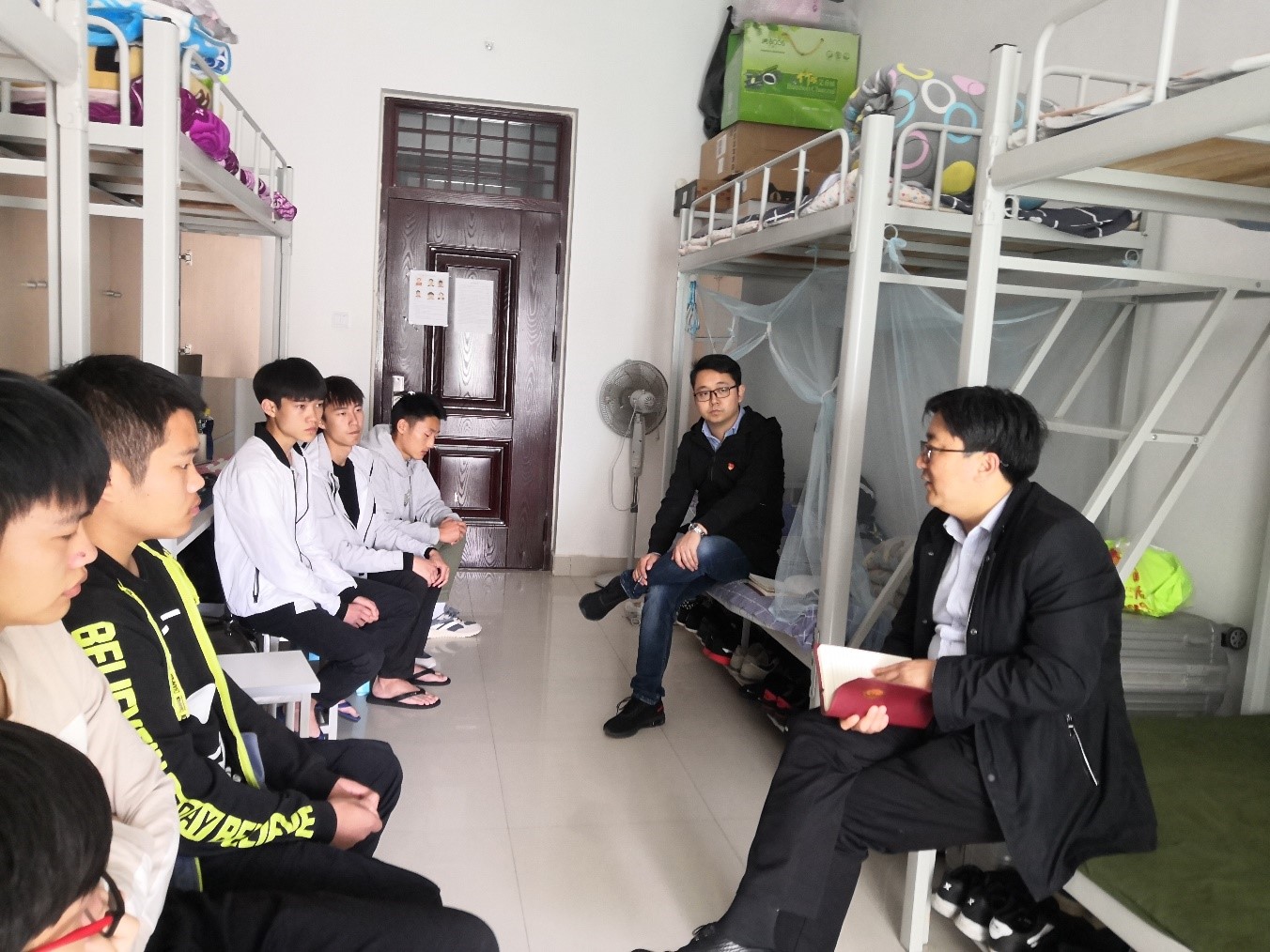 老师们从学习上、生活上、未来规划上与同学们深切交流,尤其是在冬季宿舍安全问题上、期末考试问题上、防疫安全问题上向每个宿舍的同学进行了重点强调。同学们也向老师提出了学校图书馆占座情况严重;考研压力较大;专业实习不知该注意什么等问题。老师们均认真给予解答,并向学院反馈宿舍恳谈会情况。
