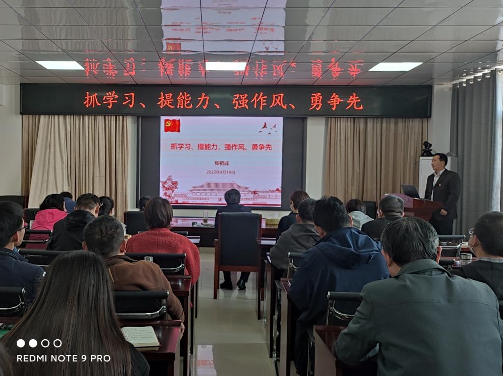 2022年4月19日下午,园艺学院党总支书记张祖成在2a322会议室,以“抓学习、提能力,强作风、勇争先”为主题,为园艺学院全体教职工讲授专题党课。